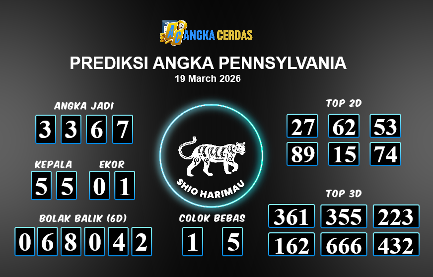 Prediksi Togel PENNSYLVANIA untuk hari ini Kamis, 19 Maret 2026, adalah salah