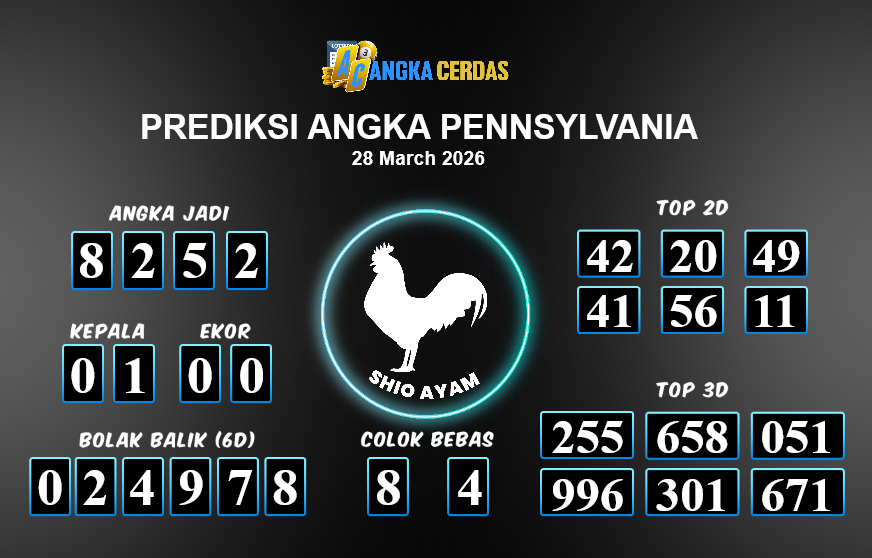 Prediksi Togel PENNSYLVANIA untuk hari ini Sabtu, 28 Maret 2026, adalah salah