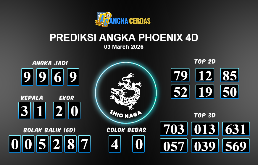 Prediksi Togel PHOENIX 4D untuk hari ini Selasa, 03 Maret 2026, adalah salah