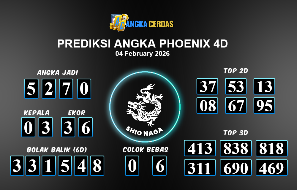 Prediksi Togel PHOENIX 4D untuk hari ini RABU, 04 Februari 2026, adalah salah