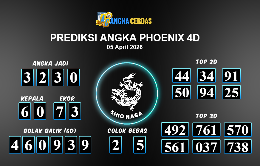 Prediksi Togel PHOENIX 4D untuk hari ini Minggu, 05 April 2026, adalah salah
