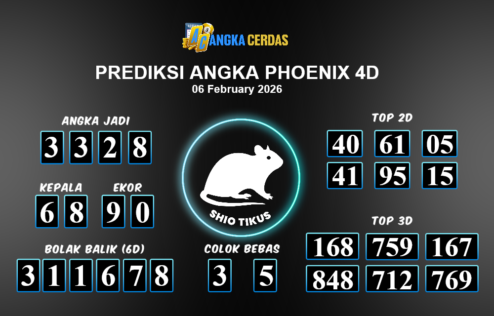 Prediksi Togel PHOENIX 4D untuk hari ini Jumat, 06 Februari 2026, adalah salah