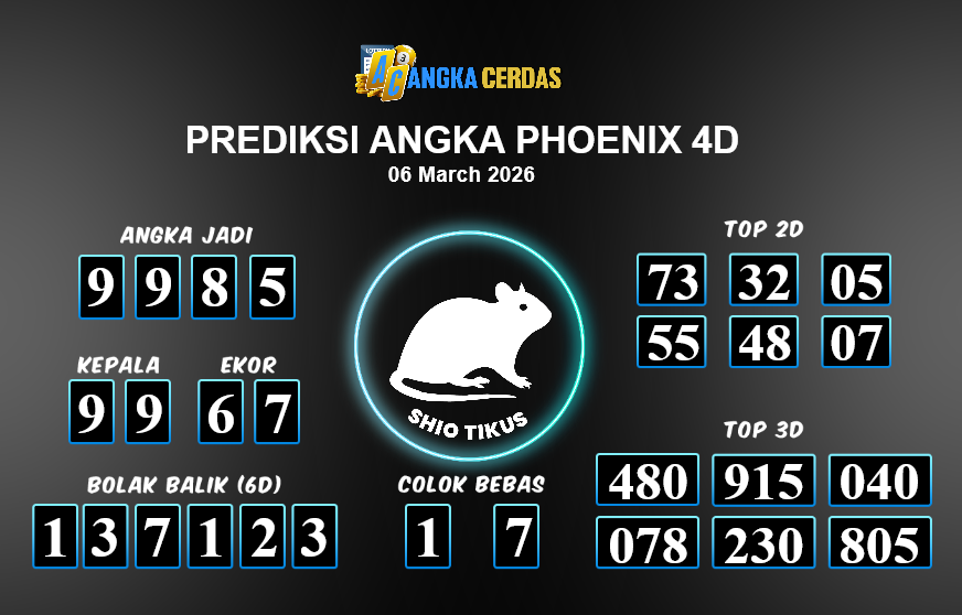Prediksi Togel PHOENIX 4D untuk hari ini Jumat, 06 Maret 2026, adalah salah