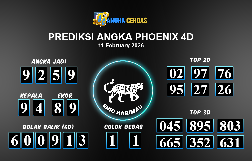 Prediksi Togel PHOENIX 4D untuk hari ini Rabu, 11 Februari 2026, adalah salah