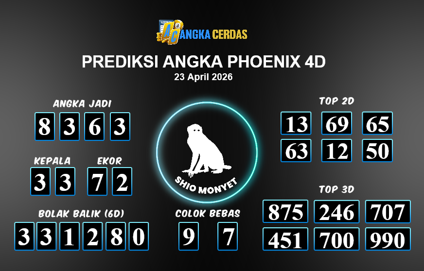 Prediksi Togel PHOENIX 4D untuk hari ini Kamis, 23 April 2026, adalah salahsatu jenis togel yang memiliki banyak penggemar.Ini terutama ditujukanbagi Anda yang menyukai 4d/3d/2d. Prediksi Angka Cerdas yang kamisediakan,bisa