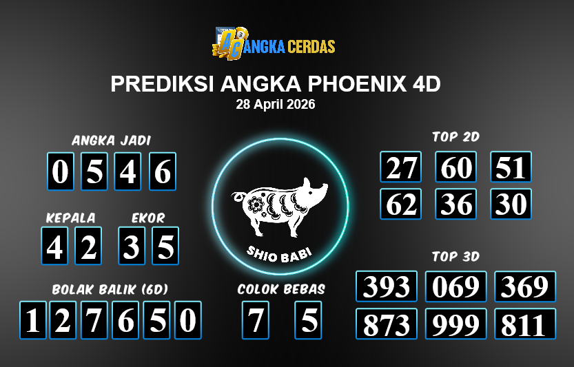 Prediksi Togel PHOENIX 4D untuk hari ini Selasa, 28 April 2026, adalah salahsatu jenis togel yang memiliki banyak penggemar.Ini terutama ditujukanbagi Anda yang menyukai 4d/3d/2d. Prediksi Angka Cerdas yang kamisediakan,bisa