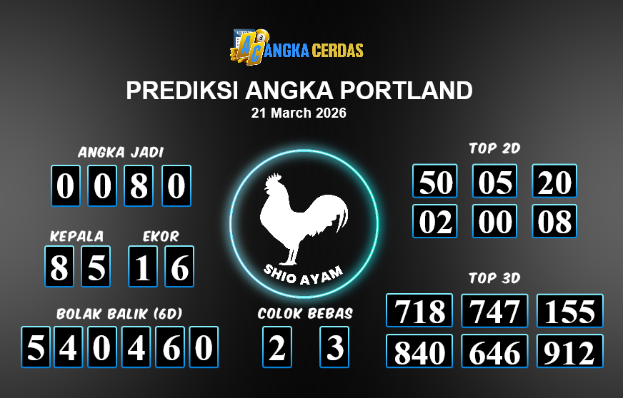 Prediksi Togel PORTLAND untuk hari ini Sabtu, 21 Maret 2026, adalah salah