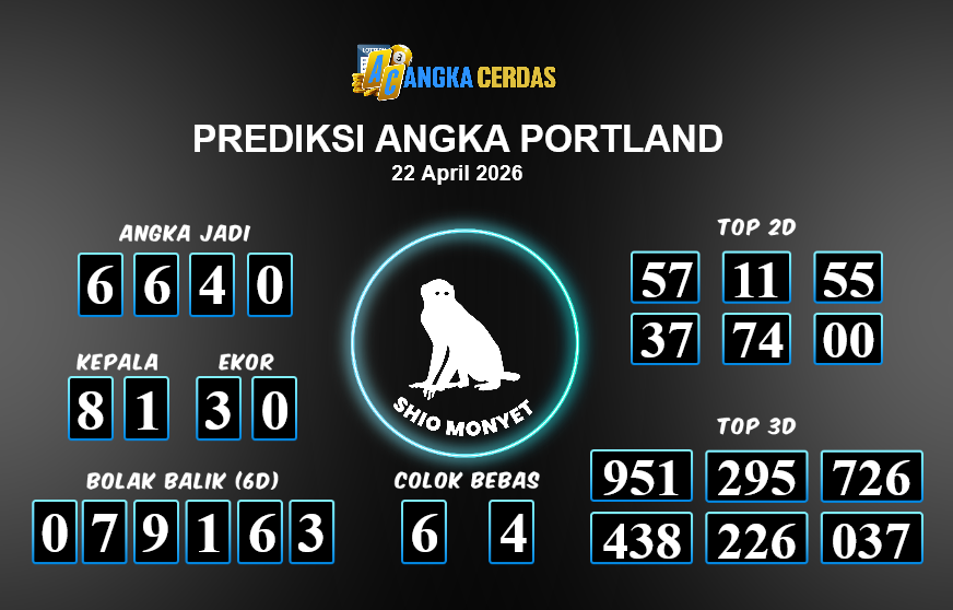 Prediksi Togel PORTLAND untuk hari ini Rabu, 22 April 2026, adalah salahsatu jenis togel yang memiliki banyak penggemar.Ini terutama ditujukanbagi Anda yang menyukai 4d/3d/2d. Prediksi Angka Cerdas yang kamisediakan,bisa