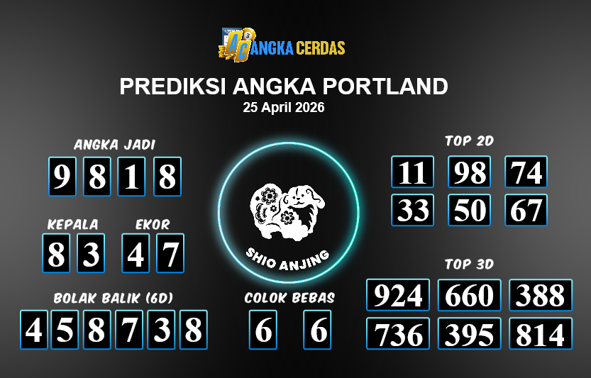 Prediksi Togel PORTLAND untuk hari ini Sabtu, 25 April 2026, adalah salahsatu jenis togel yang memiliki banyak penggemar.Ini terutama ditujukanbagi Anda yang menyukai 4d/3d/2d. Prediksi Angka Cerdas yang kamisediakan,bisa