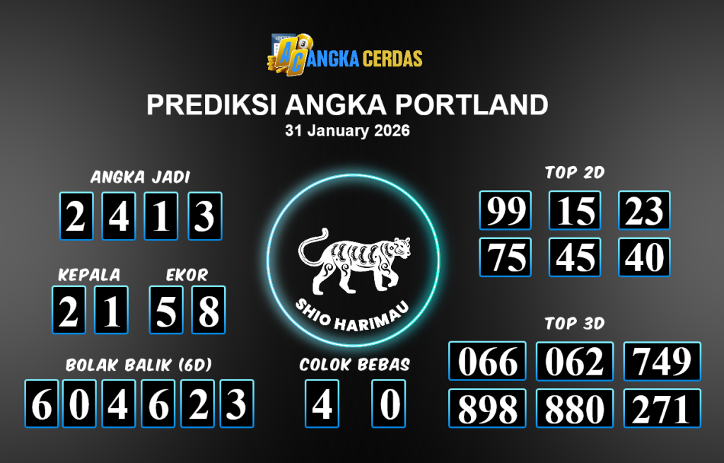 Prediksi Togel PORTLAND untuk hari ini Sabtu 31 Januari 2026,adalah salah