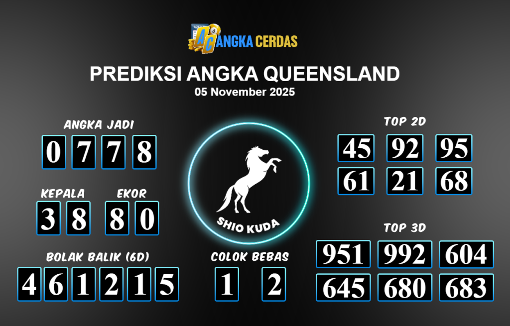 Prediksi Togel QUEENSLAND untuk hari ini Rabu 05 November 2025, adalah salah