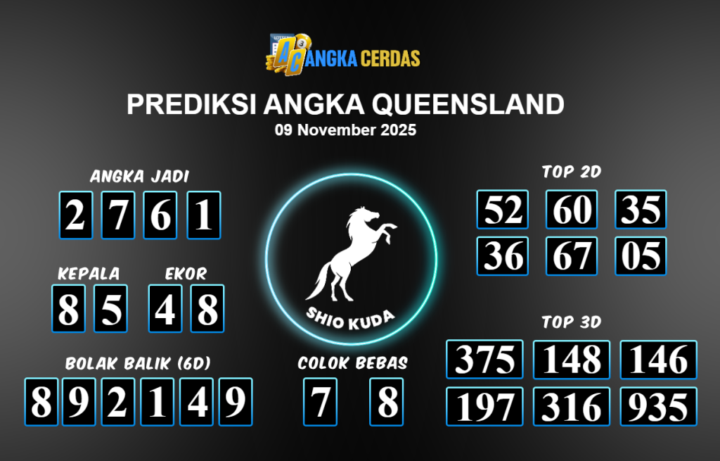 Prediksi Togel QUEENSLAND untuk hari ini Minggu 09 November 2025, adalah salah