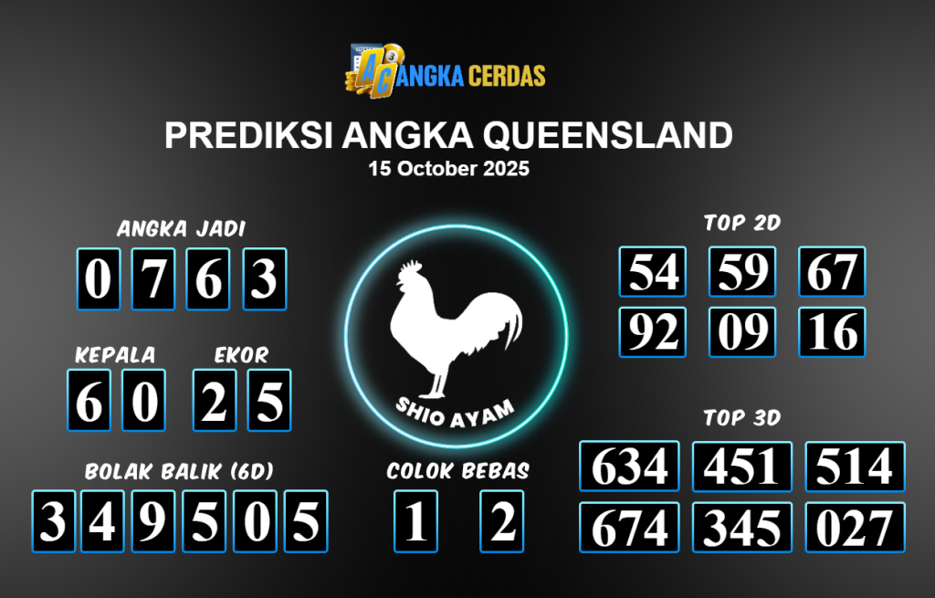 Prediksi Togel QUEENSLAND untuk hari ini Rabu 15 Oktober 2025, adalah salah