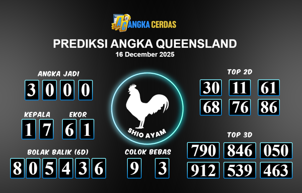 Prediksi Togel QUEENSLAND untuk hari ini Selasa 16 Desember November 2025, adalah salah