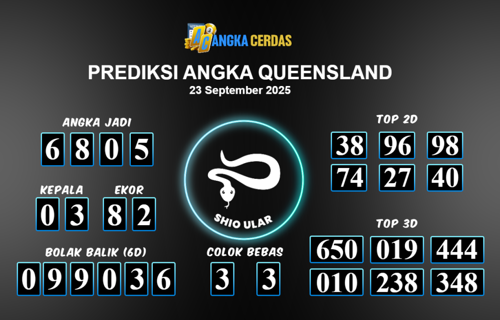 Prediksi Togel QUEENSLAND untuk hari ini Selasa 23 September 2025, adalah salah