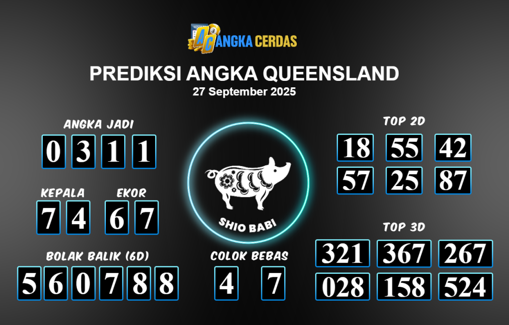 Prediksi Togel QUEENSLAND untuk hari ini Sabtu 27 September 2025, adalah salah