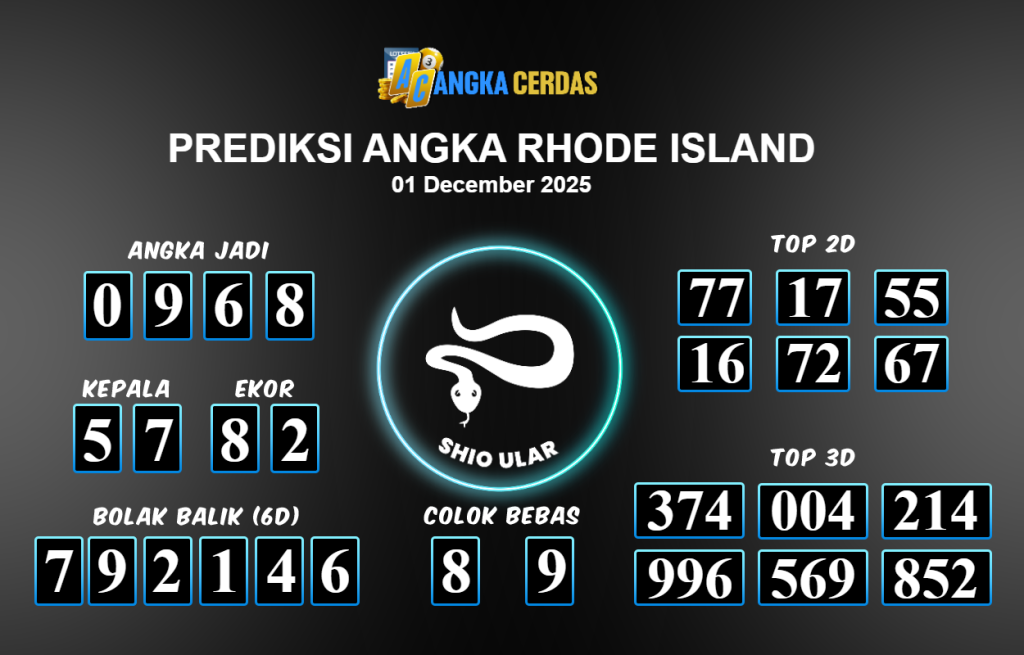 Prediksi Togel RHODE ISLAND untuk hari ini Senin 1 Desember November 2025, adalah salah