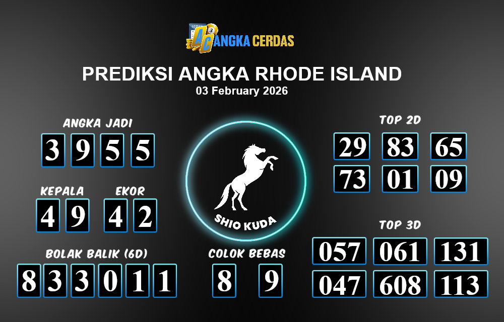 Prediksi Togel RHODE ISLAND untuk hari ini Selasa 03 Februari 2026, adalah salah
