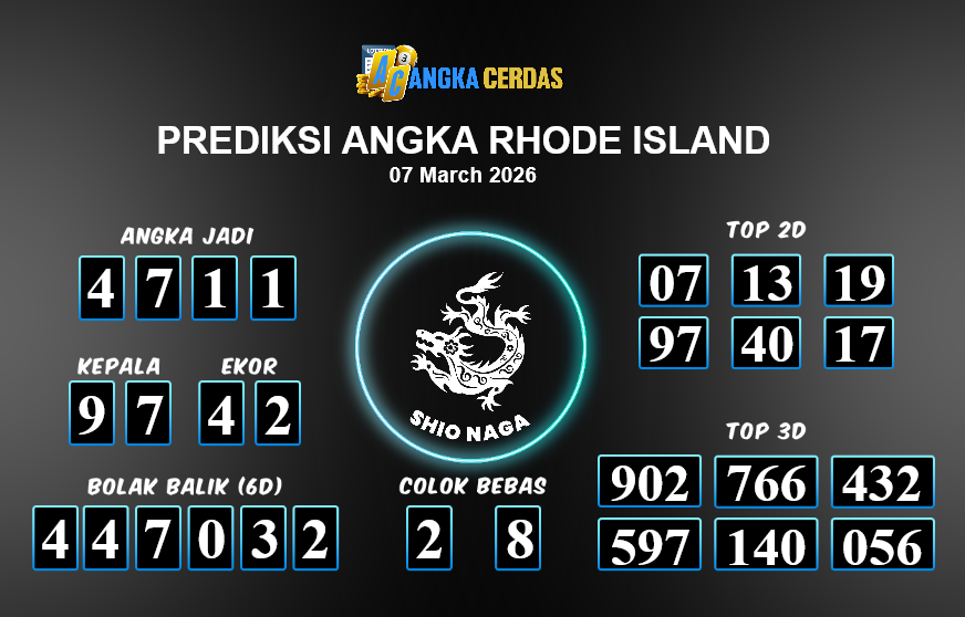 Prediksi Togel RHODE ISLAND untuk hari ini Sabtu, 07 Maret 2026, adalah salah