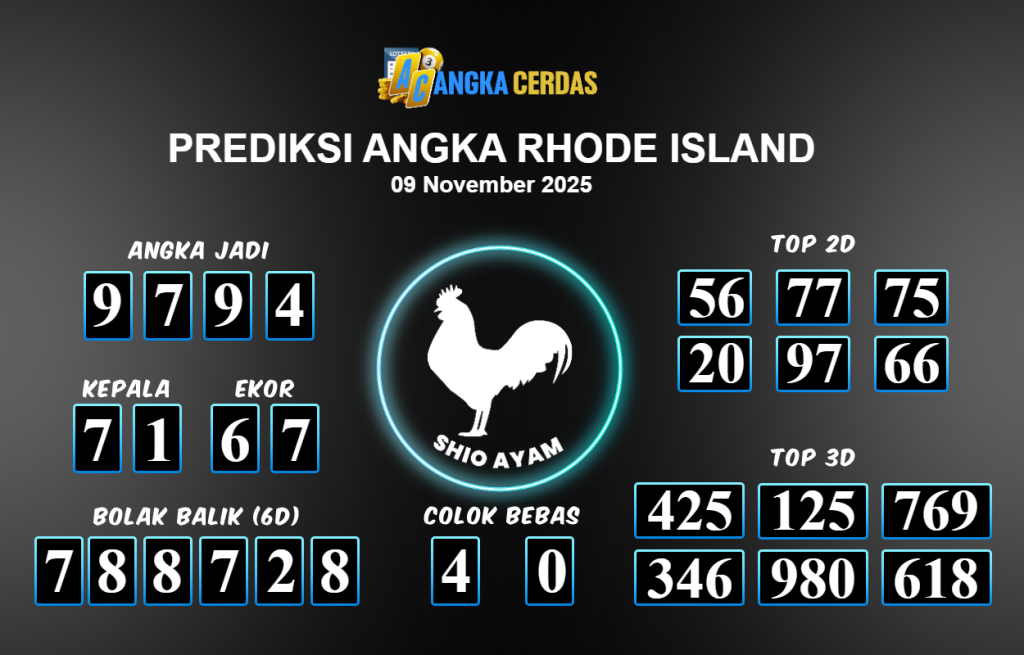 Prediksi Togel RHODE ISLAND untuk hari ini Minggu 09 November 2025, adalah salah
