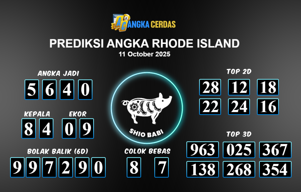 Prediksi Togel RHODE ISLAND untuk hari ini Sabtu 11 Oktober 2025, adalah salah