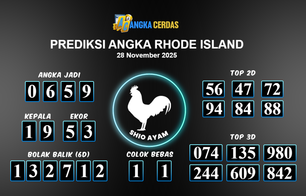Prediksi Togel RHODE ISLAND untuk hari ini Jumat 28 November 2025, adalah salah