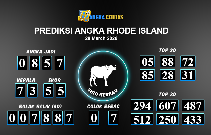 Prediksi Togel RHODE ISLAND untuk hari ini Minggu, 29 Maret 2026, adalah salah