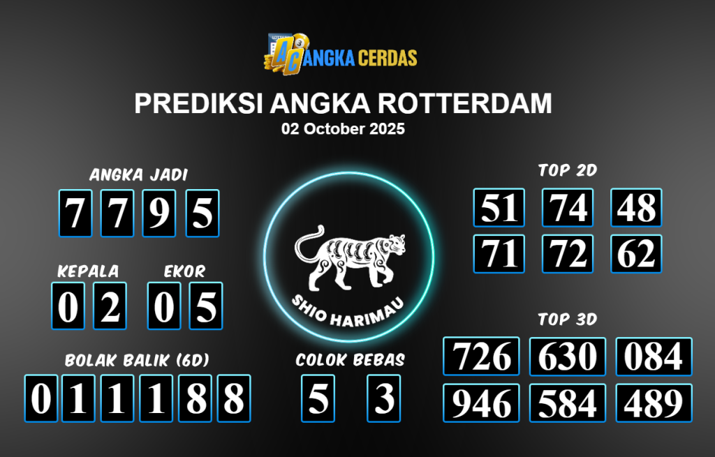 Prediksi Togel ROTTERDAM untuk hari ini Kamis 02 Oktober 2025, adalah salah