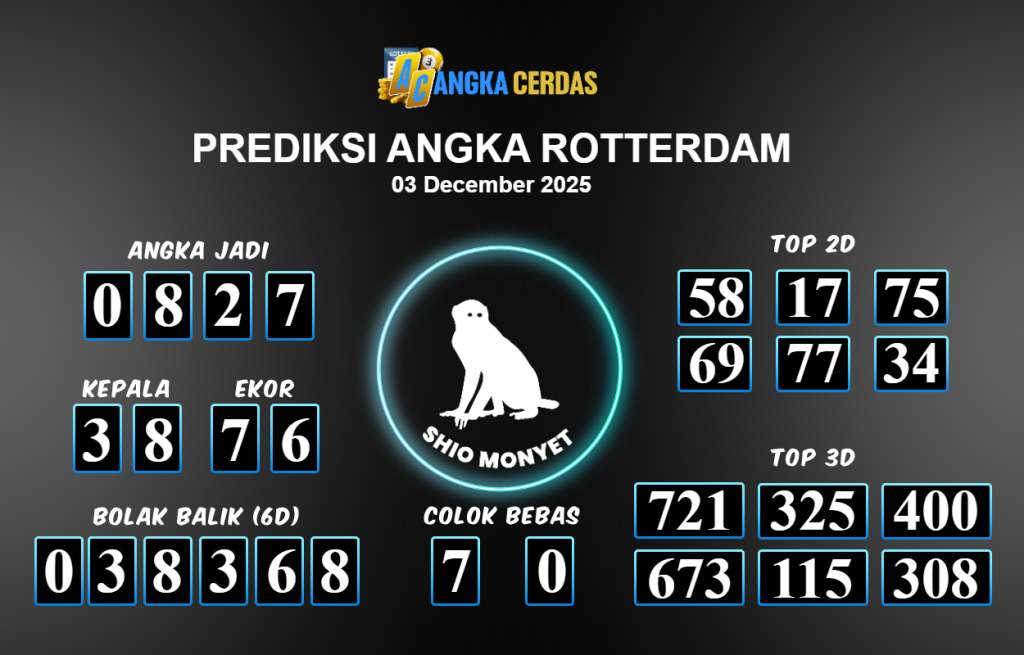 Prediksi Togel ROTTERDAM untuk hari ini Rabu 03 Desember November 2025, adalah salah