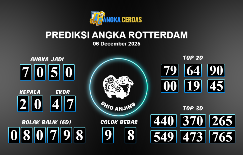 Prediksi Togel ROTTERDAM untuk hari ini Jumat 05 Desember November 2025, adalah salah