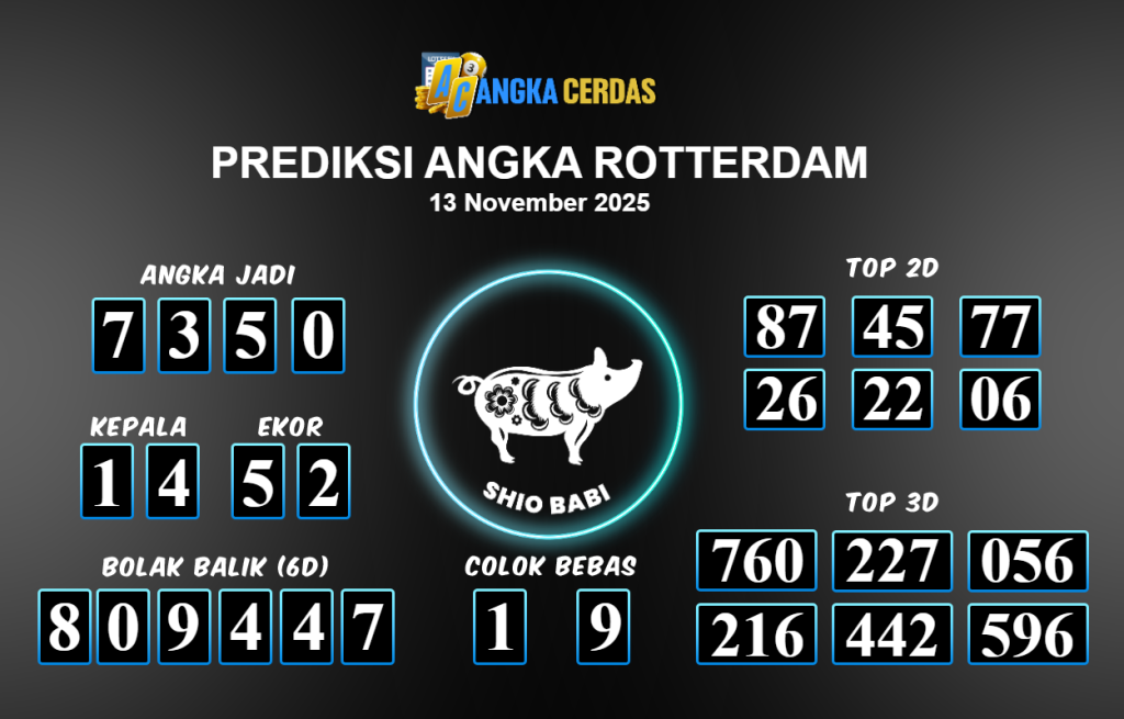 Prediksi Togel ROTTERDAM untuk hari ini Kamis 13 November 2025, adalah salah