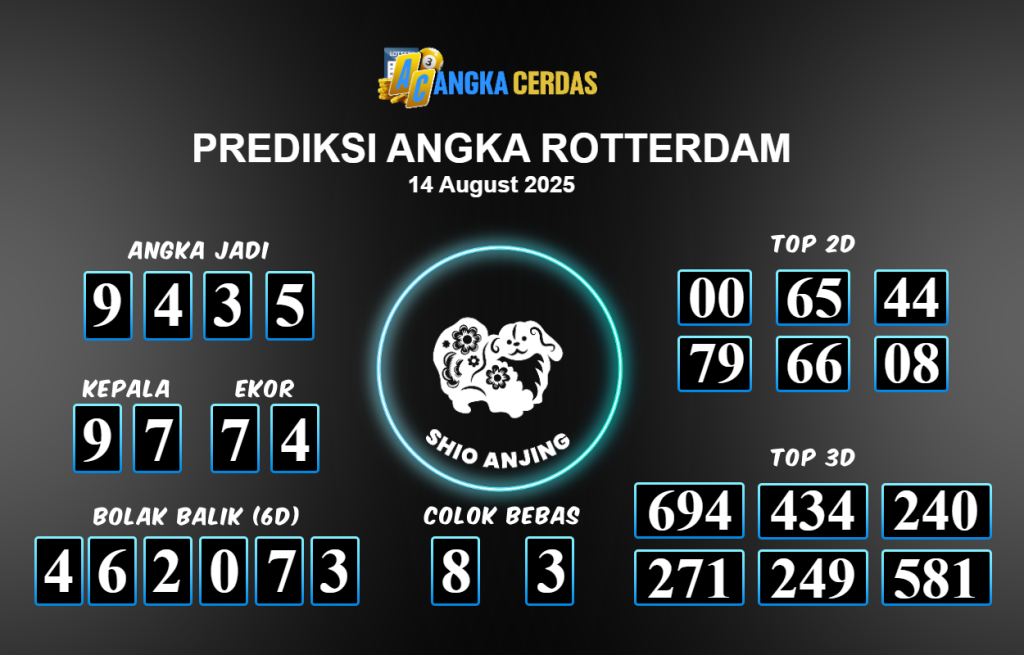 Prediksi Togel ROTTERDAM untuk hari ini Kamis 14 Agustus 2025, adalah salah