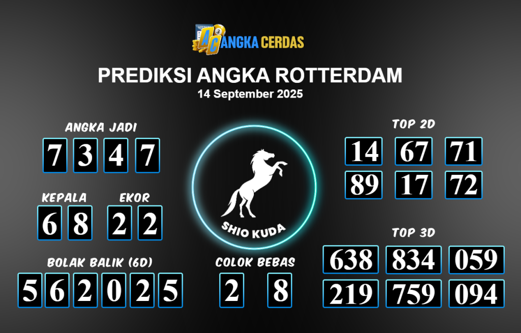 Prediksi Togel ROTTERDAM untuk hari ini Minggu 14 September 2025, adalah salah