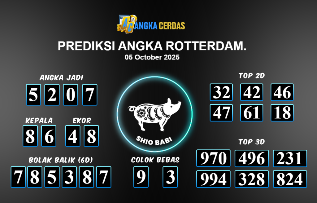 Prediksi Togel ROTTERDAM untuk hari ini Sabtu 27 September 2025, adalah salah