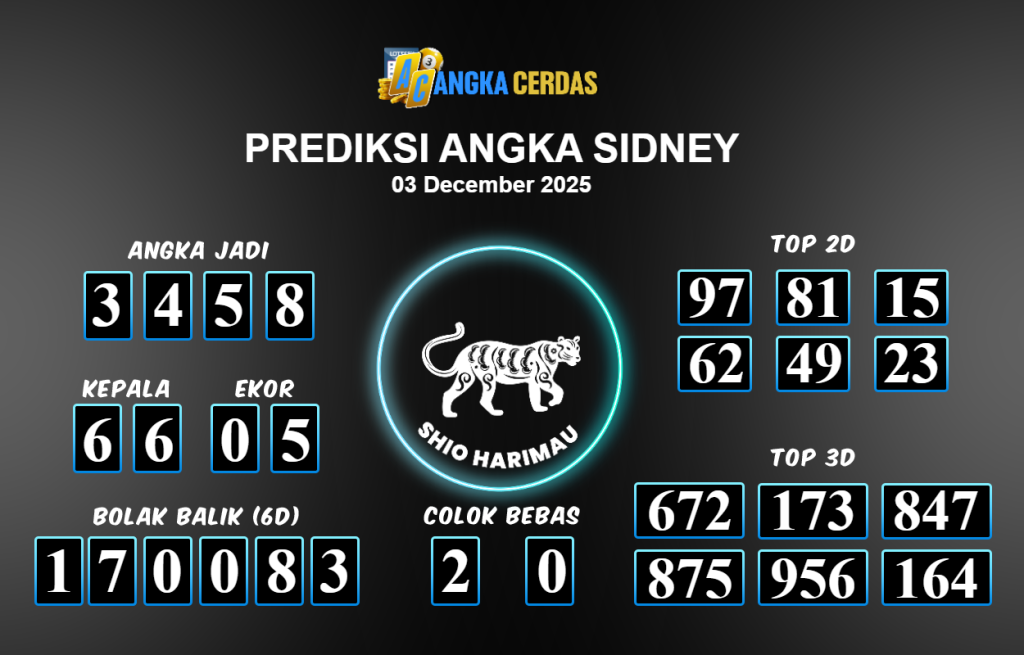 Prediksi Togel SIDNEY untuk hari ini Rabu 03 Desember November 2025, adalah salah