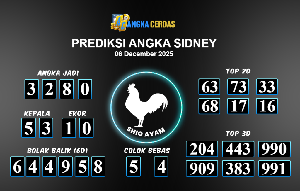 Prediksi Togel SIDNEY untuk hari ini Jumat 05 Desember November 2025, adalah salah