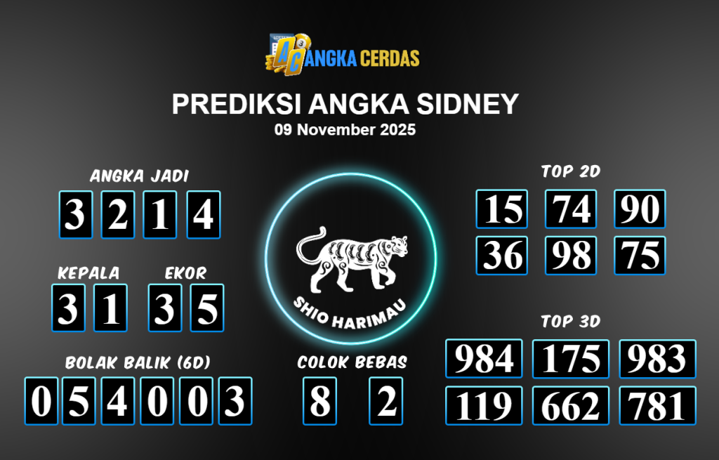 Prediksi Togel SIDNEY untuk hari ini Minggu 09 November 2025, adalah salah