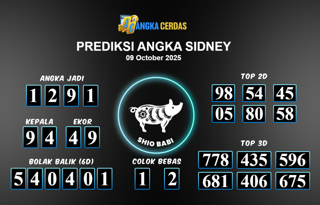Prediksi Togel SIDNEY untuk hari ini Kamis 09 Oktober 2025, adalah salah