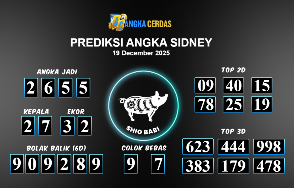 Prediksi Togel SIDNEY untuk hari ini Jumat 19 Desember November 2025, adalah salah