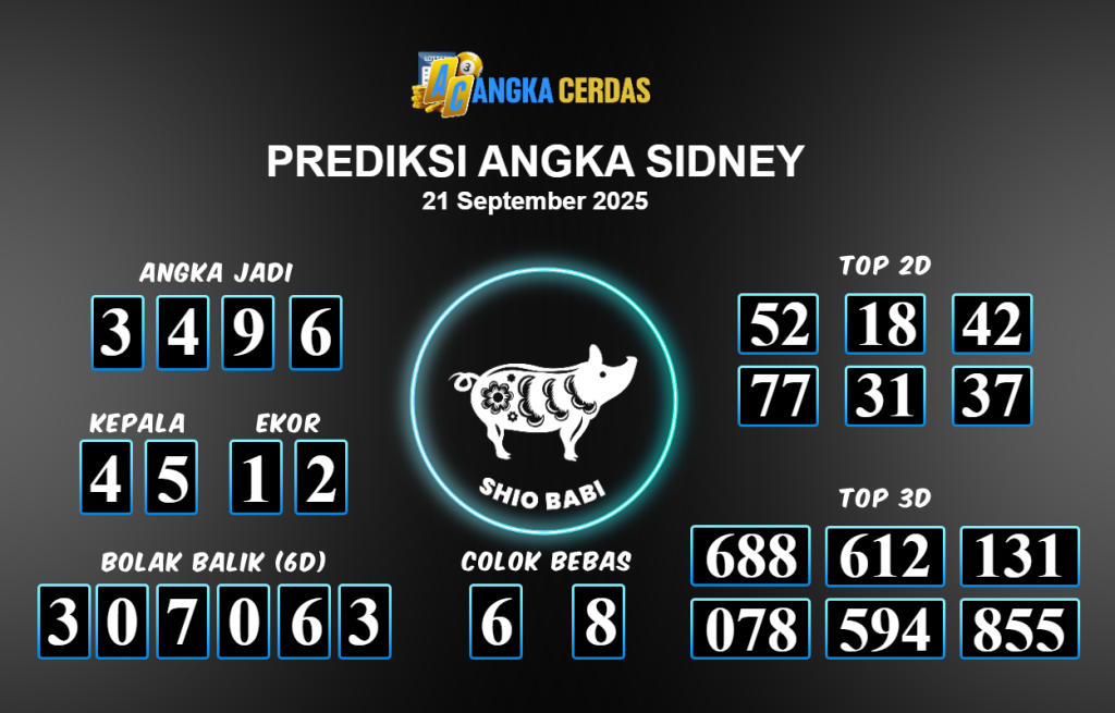 Prediksi Togel SIDNEY untuk hari ini Sabtu 20 September 2025, adalah salah