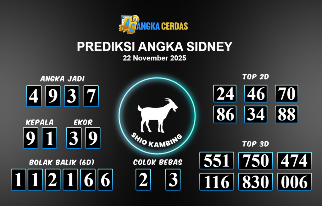 Angka Cerdas : Bocoran Prediksi Togel SIDNEY Tanggal 22 November 2025