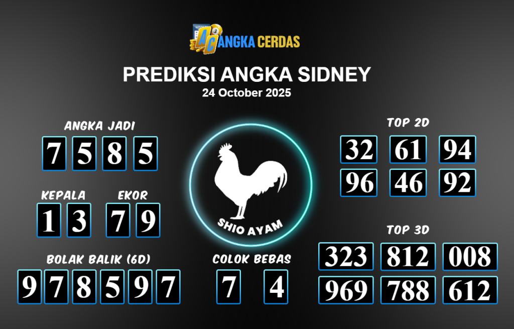 Prediksi Togel SIDNEY untuk hari ini Jumat 24 Oktober 2025, adalah salah