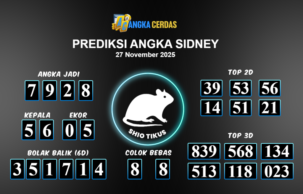 Prediksi Togel SIDNEY untuk hari ini Kamis 27 November 2025, adalah salah
