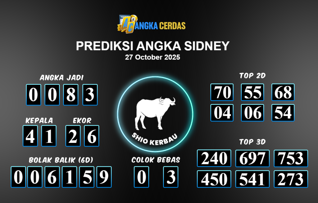 Prediksi Togel SIDNEY untuk hari ini Senin 27 Oktober 2025, adalah salah