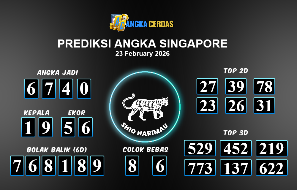 Prediksi Togel SINGAPORE untuk hari ini Senin, 23 Februari 2026, adalah salah