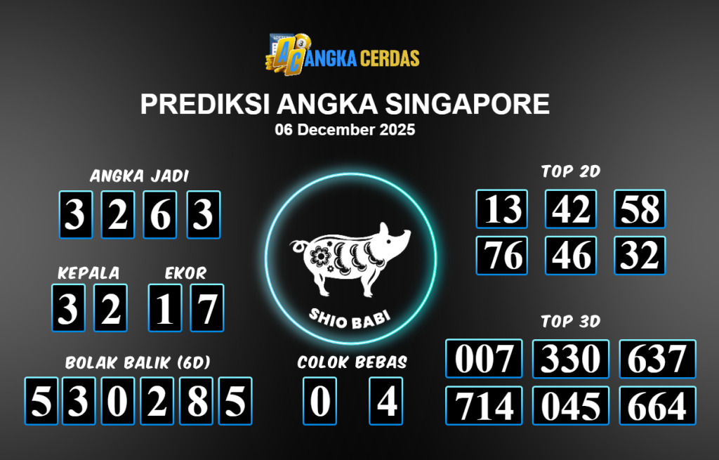 Prediksi Togel SINGAPORE untuk hari ini Jumat 05 Desember November 2025, adalah salah