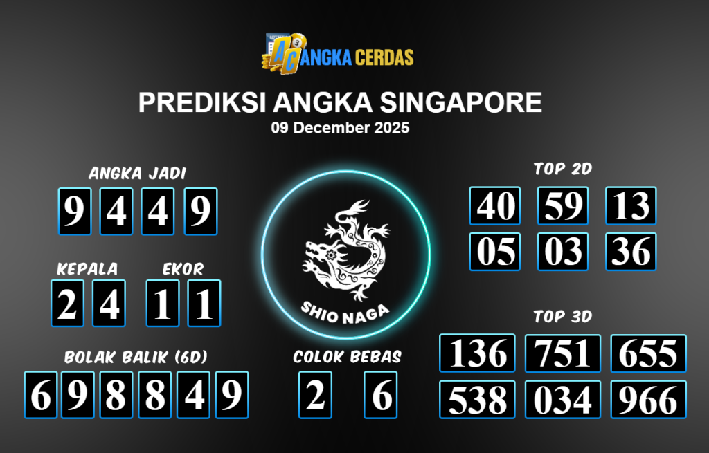 Prediksi Togel SINGAPORE untuk hari ini Selasa 09 Desember November 2025, adalah salah