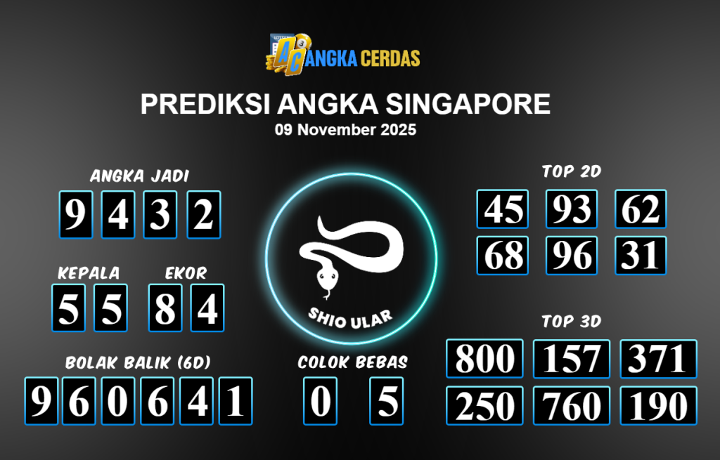 Prediksi Togel SINGAPORE untuk hari ini Minggu 09 November 2025, adalah salah