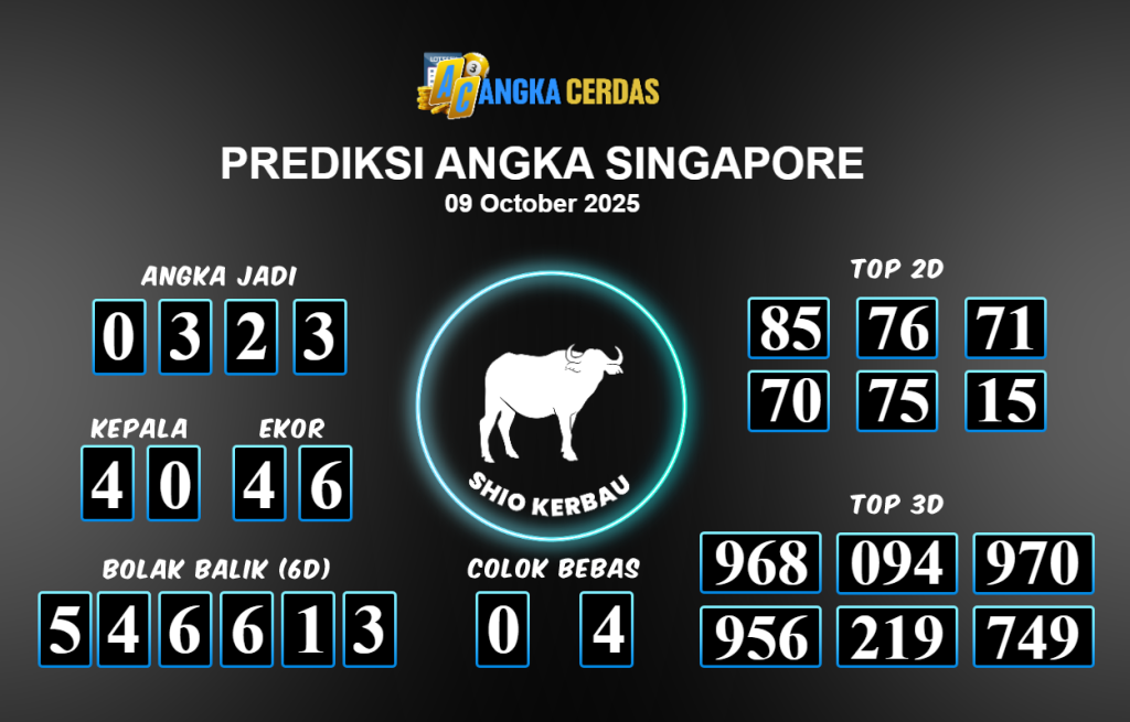 Prediksi Togel SINGAPORE untuk hari ini Kamis 09 Oktober 2025, adalah salah