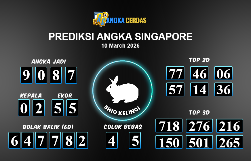 Prediksi Togel SINGAPORE untuk hari ini Selasa, 10 Maret 2026, adalah salah